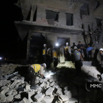 Edlib Media Center cited “two martyrs and several wounded, as a result of the regime’s helicopter bombardment with explosive barrels on the southern neighborhood of Ma’rat Al-Nu`man city.”