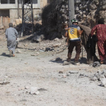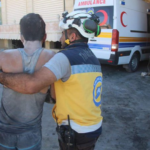 The White Helmets reported: “Five civilians, including three children and a woman, were injured due to warplanes shelling civilian houses in the center of Ihsam town in Edlib countryside. Our teams were there with civilians.”