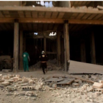 An image posted by @AleppoAMC shows the “destruction in civilian homes” as a result of the airstrikes on Hazarin.