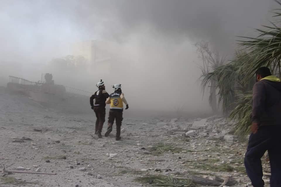 According to @SY_plus, “two civilians were killed and 7 others were injured in an air strike on the city of Jisr Al-Shughour in Idlib, one of the airstrikes that resulted in the Civil Defense Center being out of service.”