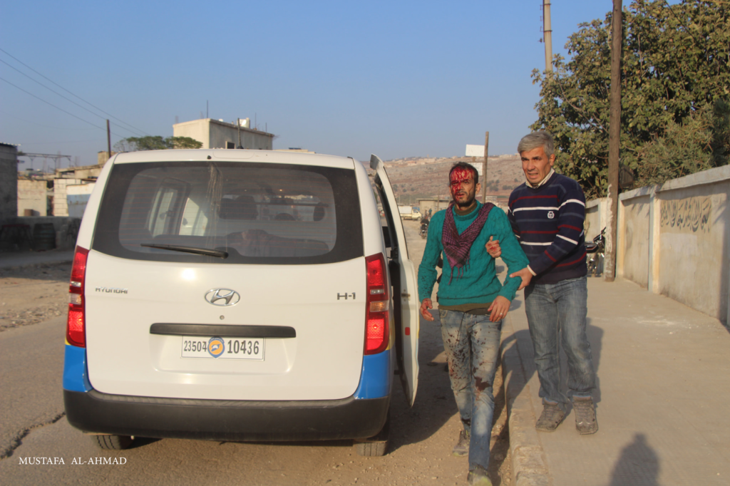 A tweet by @MoamenRawy reported “Haitham Hussein Al-Saleh, a volunteer in the civil defense in Idlib district, was injured with his family in the town of Mishmishan, as a result of Assad’s warplanes targeting civilian homes today, Thursday.”