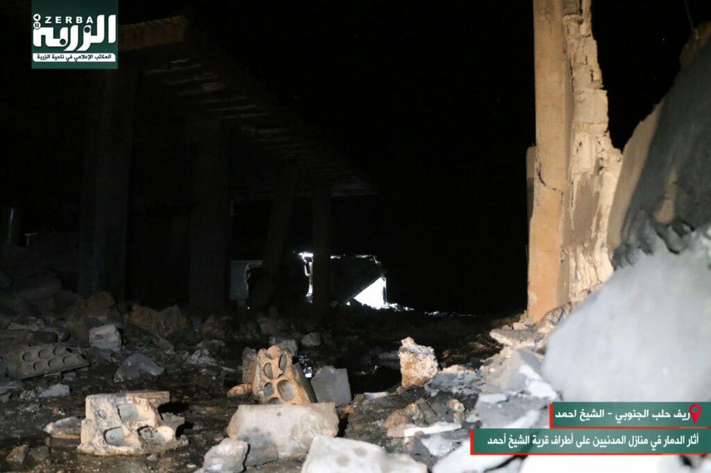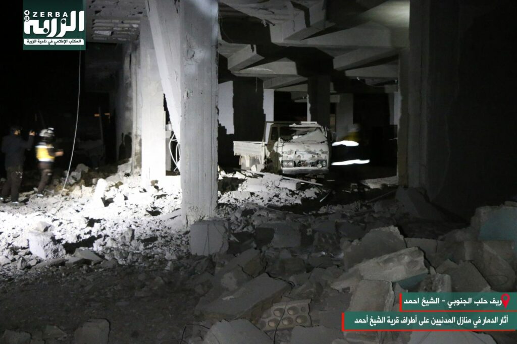 Three people including a child, a woman, and an elderly man, were injured following alleged Russian airstrikes on the town of Sheikh Ahmed in the southern Aleppo countryside on the evening of December 3rd 2021, according to local reports.