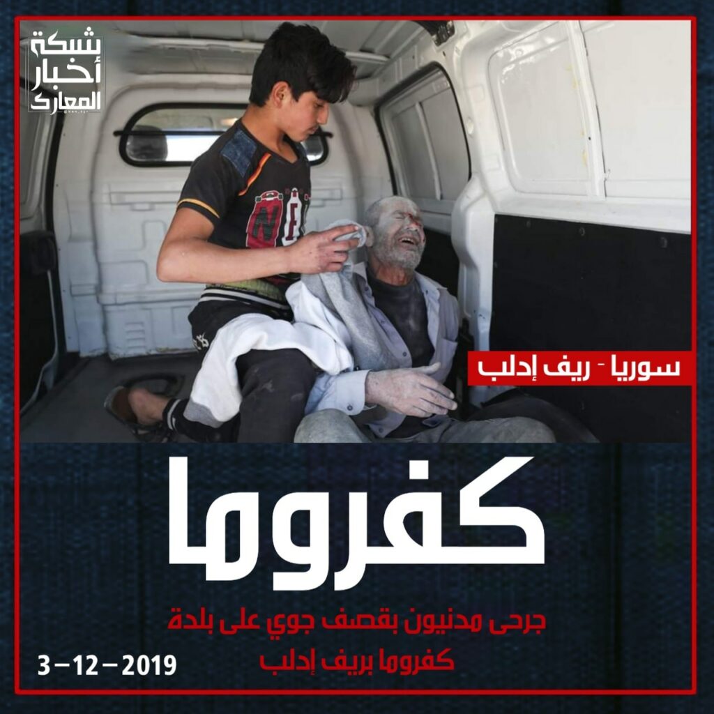 Three civilians, including one man, were reportedly injured in an alleged Syrian regime and/or Russian airstrikes on the town of Kafarrouma, Idlib governorate, on December 3rd 2019, according to local sources.