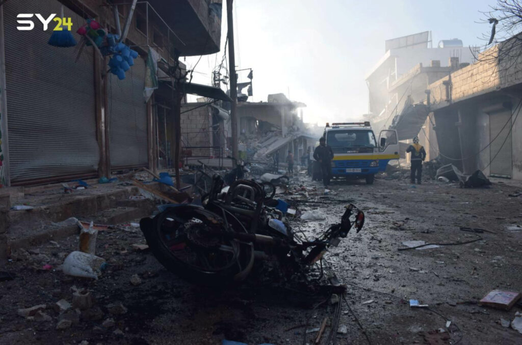 Tariq Alloush, the director of the Civil Defense Center in the village, told Smart News Agency that “eight people, including three children and a woman, were killed and 14 others, including four children and two women, were wounded by Russian aerial bombardment targeting the popular market in the town of Balyoun”.