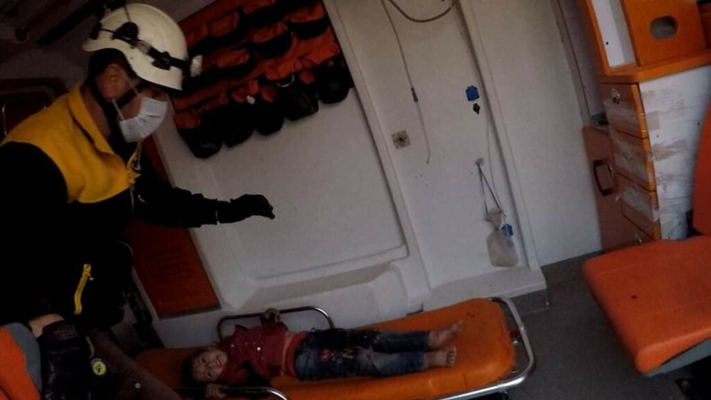 Shahba Press, Ariha Today, and other sources said the strike resulted in seven injuries, including three women and a child. Images published by @media_idlib show a child being attended to in the back of an ambulance. The Syrian Human Rights Committee said 14 people were injured in a barrel bomb attack that targeted a popular market in Talmans.