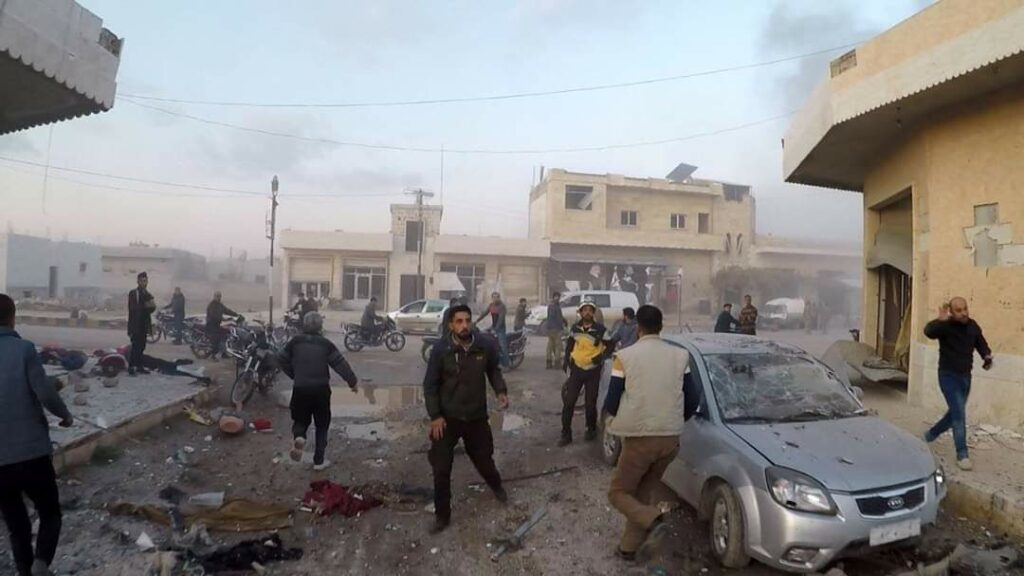 As many as three civilians, one man, one woman and a child, were killed and as many as 14 others, including three women and a child, were injured in an alleged Russian or Syrian regime airstrike on a marketplace in the village of Talmans, Idlib Governate on December 7th, 2019 local media reported.