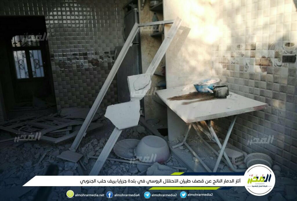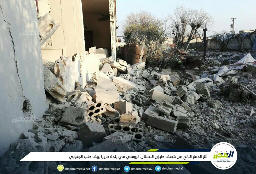 Up to two people were injured in up to four alleged Russian airstrikes on the town of Jazraya, Aleppo Governorate, on December 16th, 2019, according to local sources.