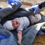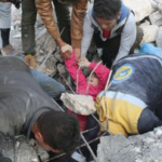 Alhurra quoted the SCD volunteer Abdullah saying: “I couldn’t leave the girl, while you’re trying to save someone, you have to keep talking to him until you finish the rescue. We could not tell her that her mother was killed, we tried to make her forget the situation she was in.” He continued, “Habra’s mother was alive when we arrived at the site of the attack, we could hear her voice from under the rubble, but after the second air strike, she became silent and we did not hear her anymore, she was killed.”
