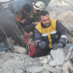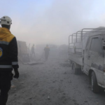 The Syrian Civil Defence (SCD) reported that their volunteers were targeted by Russian double raids while they were working to save civilians injured from earlier strikes. Video footage shows the SCD during their rescue operation, when two consecutive explosions hit the area while they were attempting to free victims from rubble.