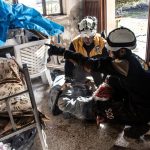 The Syrian Civil defense released a video of civilians being rescued from a home struck by land-to-land missiles. Two missiles with cluster bombs destroyed numerous homes.