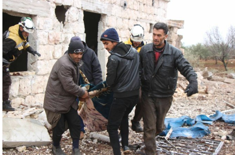 The Syrian Network for Human Rights said that “At least two civilians were killed as fixed- wing warplanes we believe were Russian fired missiles on east of al Bara village in the southern suburbs of Idlib governorate, on January 21.” The Network also said the Russian bombing hit a football playground in Al Bara causing severe damage to the playground.