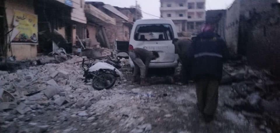 The initial death toll was put at five killed civilians by the Syrian Civil Defence, who later updated this to ten killed civilians. SMART News reported that “Russian warplanes launched a four-missile attack on civilian homes, a mosque and a road for the displaced in the village, killing ten civilians, including a child, and wounding 17 others, including two children and three women.”