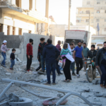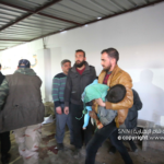 The report states: On February 25, an Idlib city resident accompanied his friend and his friend’s son to the hospital’s paediatrics department because the son needed a checkup. Dr. Khatib [director of the hospital] and the Idlib city resident said that they were inside the hospital at about 3 p.m. when they heard a loud bang, and the hospital’s windows and doors were blown out. They ran outside and said they saw that the yard in front of the school next door had been hit by a munition.”