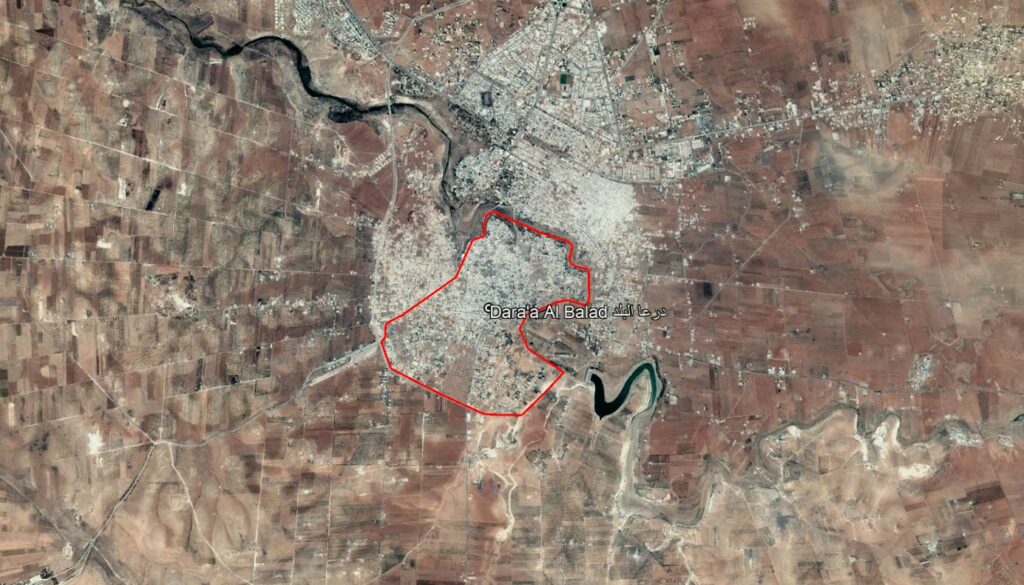 Reports of the incident mention the neighborhood of Dara'a Al Balad (درعا البلد).