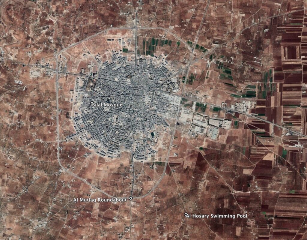 Reports of the incident mention strikes in the vicinity of the Al Mutlaq roundabout, the Bilal mosque, and the Al Hosary swimming pool. Due to limited satellite imagery and information available to Airwars, we were unable to verify the location further. The generic coordinates for the Al Mutlaq roundabout are: 35.908632, 36.634269. The generic coordinates for the Bilal mosque are: 35.929709, 36.623699. The generic coordinates for the Al Hosary pool are: 35.905023, 36.649437.