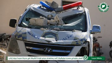 At least four people were killed and up to 23 others wounded in the first of two Syrian or Russian artillery or airstrikes in one of the most populated cities in Idlib, Sarmada, on October 16th 2021. One of those killed was reported to be police chief Saad Eddin Berri; sources said it was likely that another three policeman were also killed.