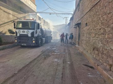 Orient news reported: “The Civil Defense explained that artillery shelling by the Assad militia and the Russian occupation affected vital and service facilities today and the road between Bab al-Hawa and Sarmada in Idlib countryside, adding that the rescue teams retrieved the bodies of the dead and treated the injured, and put out the fire in light of the continued bombing of the area”.