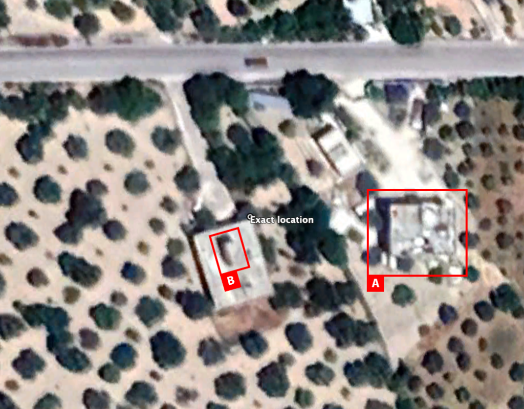 Reports of the incident mention the villages of Al Jadida (الجديدة) and Al Yakoubia (اليعقوبية). Analyzing audio-visual material from sources, Airwars has narrowed down the location to these exact coordinates: 35.929334, 36.31337.
