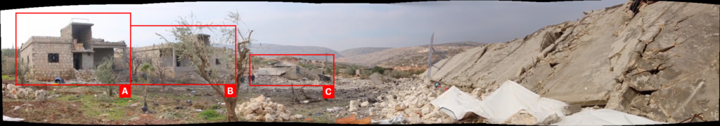 Reports of the incident mention the village of Kafr Dariyan (كفردريان). Analyzing audio-visual material from sources, Airwars has narrowed down the location to these exact coordinates: 36.188188, 36.675949.