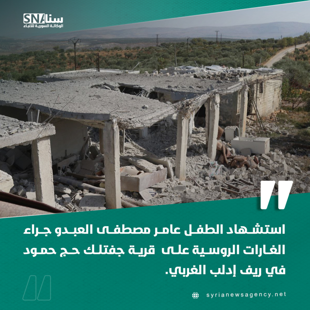 On the morning of Friday, 6th October 2023, three children belonging to one family were injured by the bombardement allegedly carried out by the Russian military and/or Syrian regime forces in the village Jaftlik Haj Hammoud in the Jisr al-Shughur countryside, west of Idlib. A two-year old child named Amer Mustafa al-Abdo later died from the serious injuries. The two surviving children were reportedly brothers.