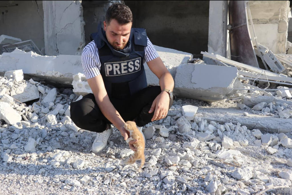 The @SyrianCivilDefe on Twitter/X social media platform added the images of the destroyed building and a striking image of an elderly man, a grandfather of the children, astonished and sitting on the ruins of his house, picking up among the rubble with deep pain and sadness from the death and injury of his grandchildren. Al Jazeera correspondent Hadi Kharrat also shared a touching image of a tiny ginger kitten who survived the bombardment. But, as Hadi wrote, both the kitten’s mother and his friend Amer were killed.