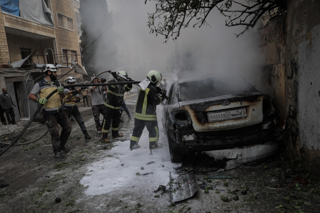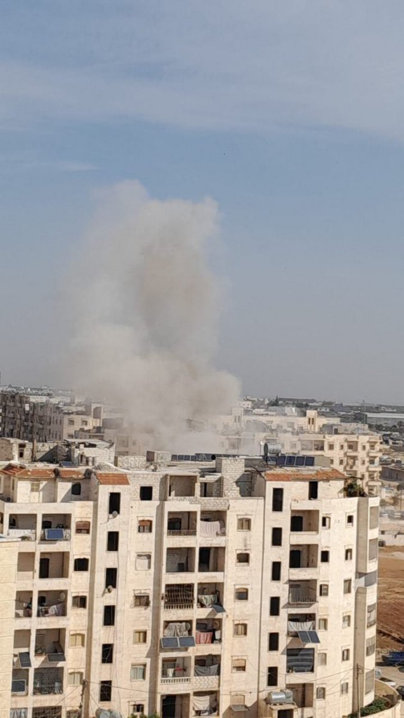 Shortly before 8:04 AM in the morning and once again in the afternoon of Sunday, October 8th, 2023, the center (in particular, an area around Al-Khamara Street) and outskirts of the city of Idlib, Syria, were hit by heavy artillery bombardment attributed to Syrian regime forces and/or Russian military. The strikes resulted in at least five civilian deaths, including two women, two children, and a young man, and injury of up to 31 civilians, including two Syrian Civil Defense (White Helmets) volunteers. The bombardment reportedly hit residential areas in the center of Idlib, a camp for displaced persons in the outskirts, a university hospital, and vital infrastructure.