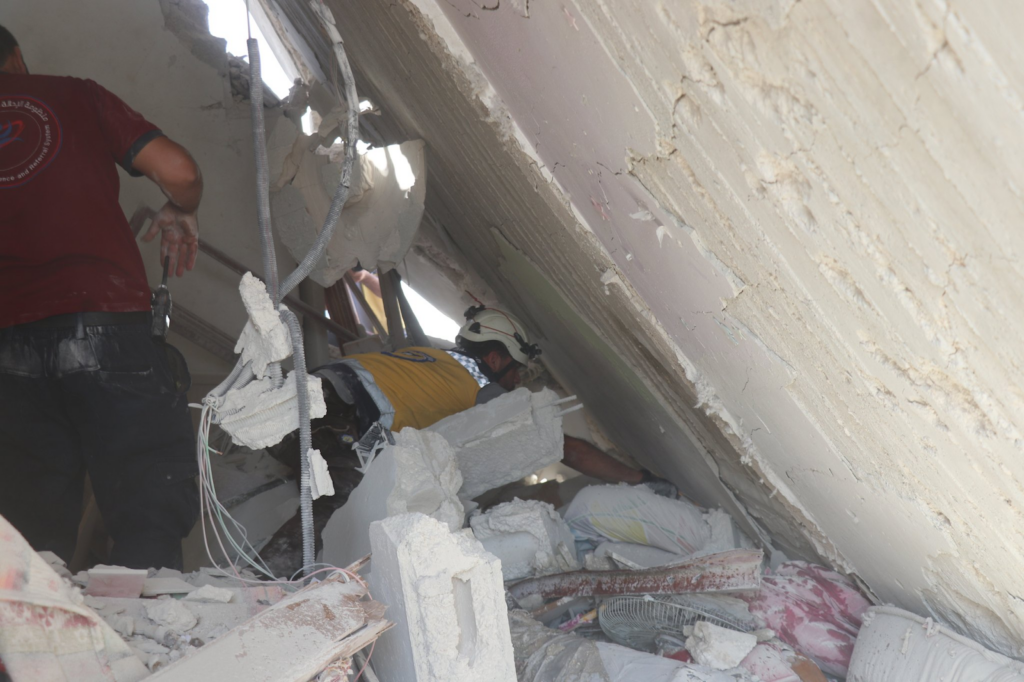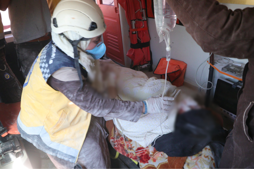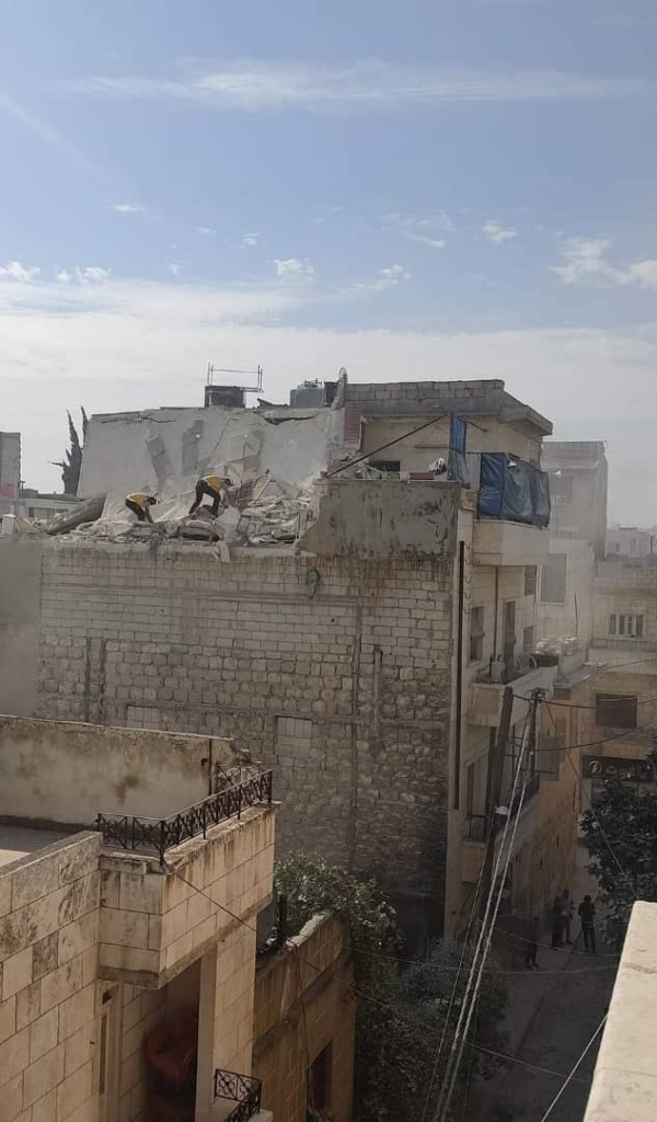 The Syrian Civil Defense forces initially reported the deaths of two children and a woman. At 9:21 AM Twitter/X user @Syrine_Za15 wrote that two women and two children were killed. At 11:24 AM SCD provided more detailed information, emphasizing that a woman died of a heart attack during the bombardment, and reporting that two people trapped (a man and a woman) were rescued from the rubble by SCD teams and that several injured people were treated. White Helmets shared images of one of their volunteers treating a victim, while another one was inspecting the damaged building. At 5:21 PM SCD reported that a young man who was rescued from under the rubble by its volunteers died as a result of his wounds sustained this morning.