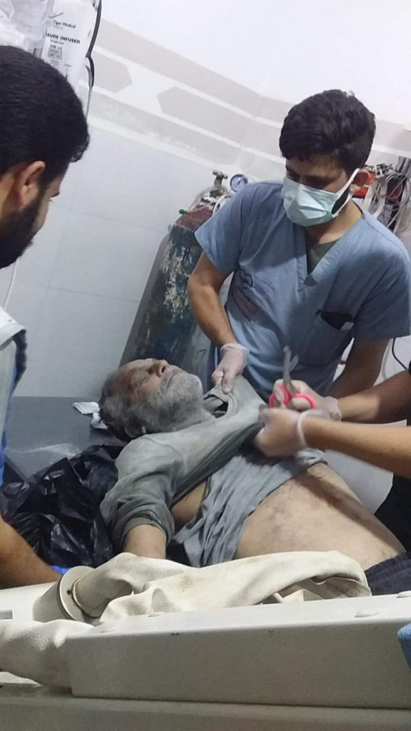 The pictures of Arieh’s Facebook account added that Haji Mahdi was well-known among the community for his generosity and good manners. The Facebook account posted a photo of Hajj Mahdi being treated in the hospital – an elderly man with dark skin, a black beard, and short black hair, was wearing black pants, a gray T-shirt, and a black sweater. When the doctors attended to him, he was completely covered by the dust from the rubble.