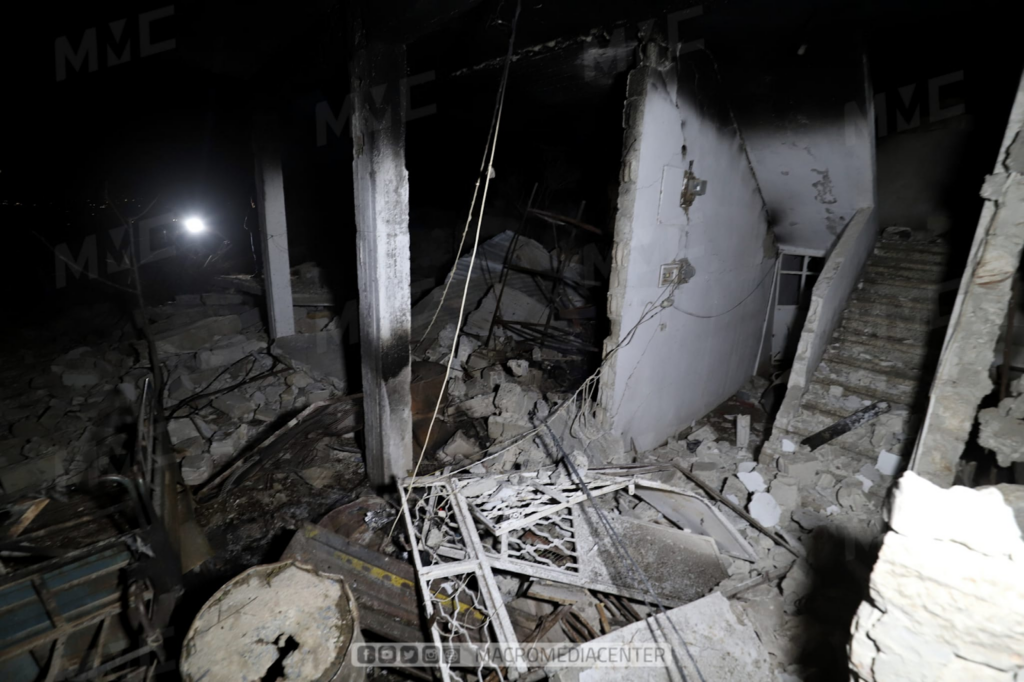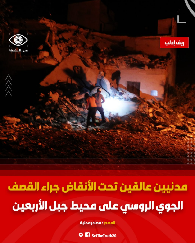 The Syrian Civil Defense (SCD) reported in multiple videos and photos the death of Mrs. Hanaa Sarmani and the injuries of her husband, 55-year-old Hajj Mahdi Ahmadou, who were found by the civil defense members that night.