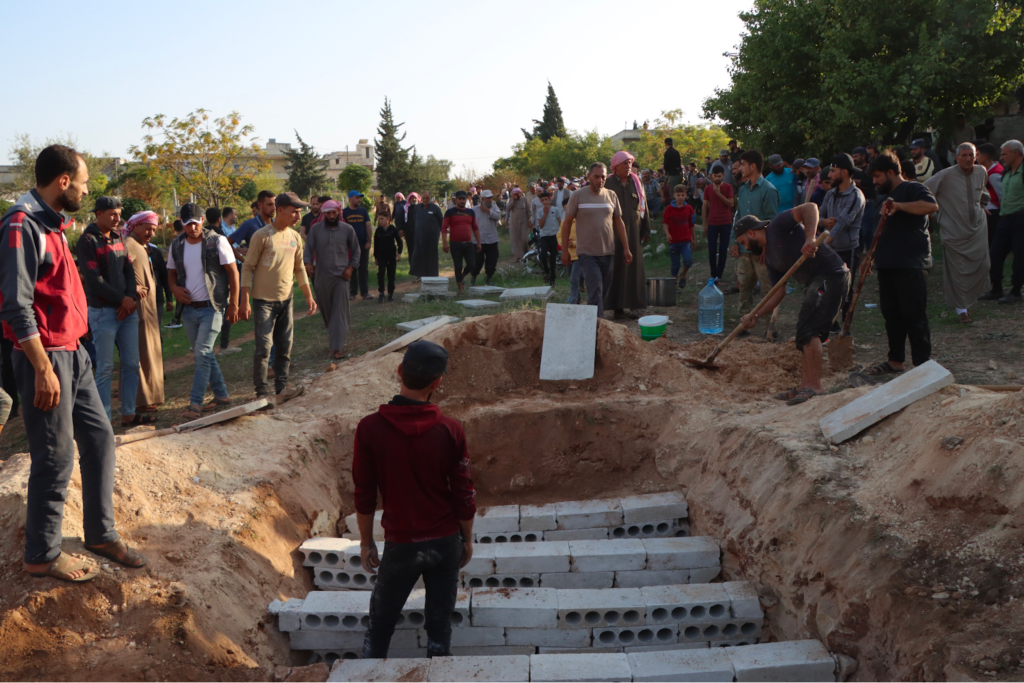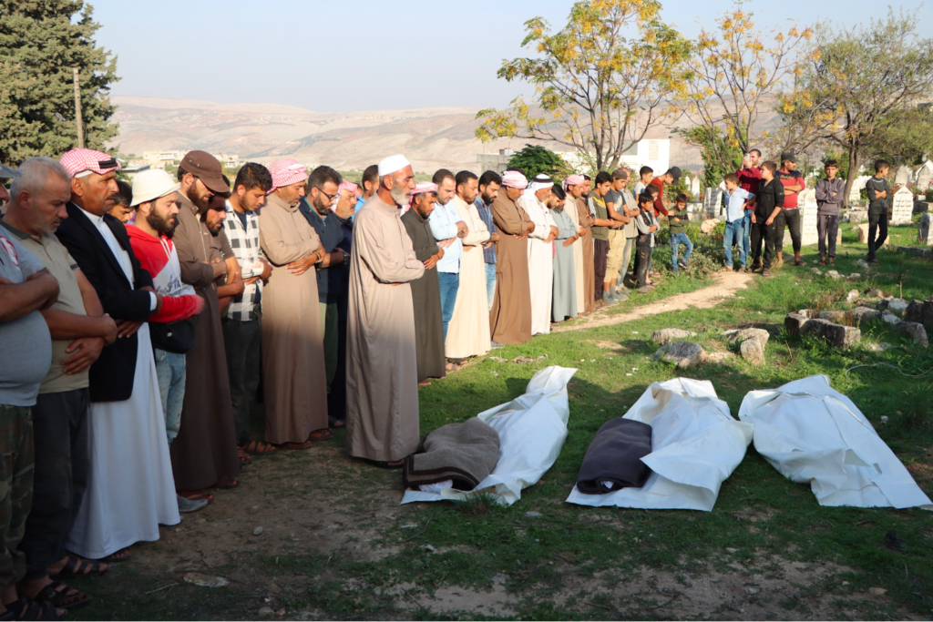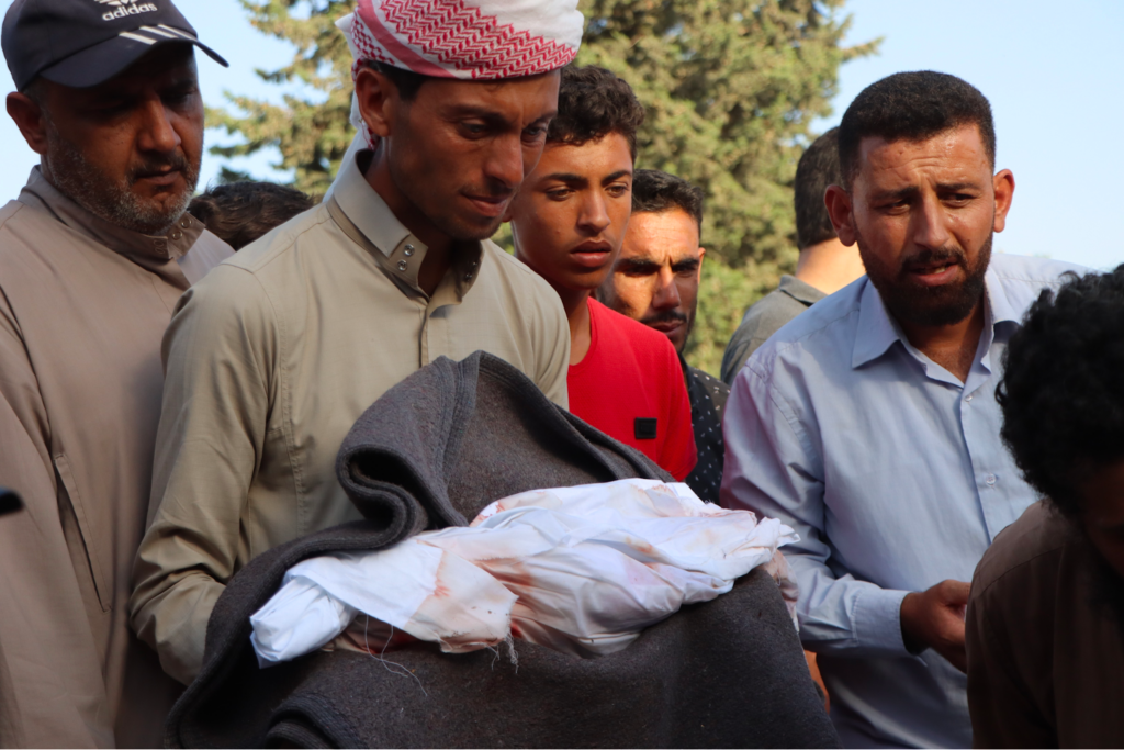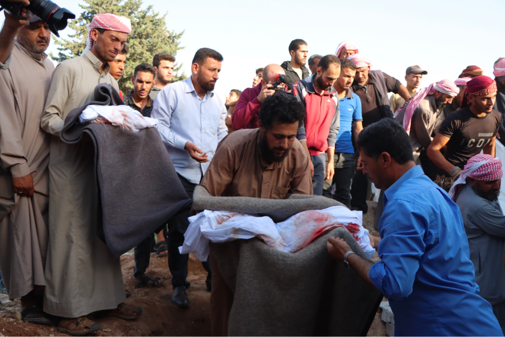 Last but not least, White Helmets posted images from the funeral of the victims, writing “Their shrouds are stained with their blood, covering the dirt after a journey of torment, oppression, displacement and fear.. They are not numbers… they are souls, dreams, and stories that will remain in the memory and conscience to tell the stories of Russian terrorism… and the innocents who were its victims.“