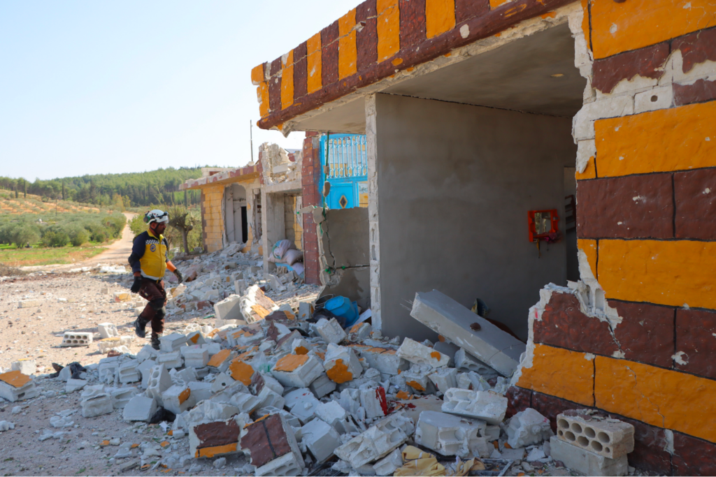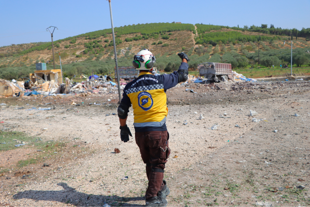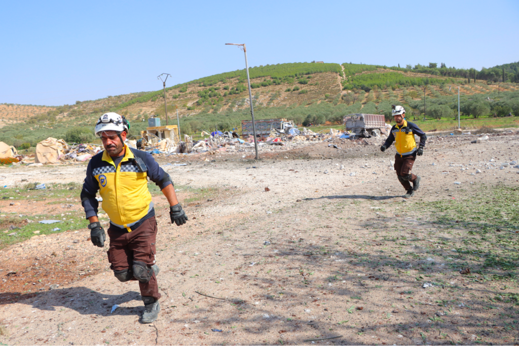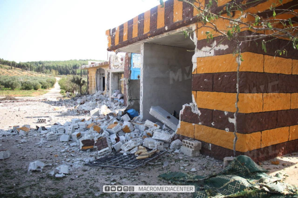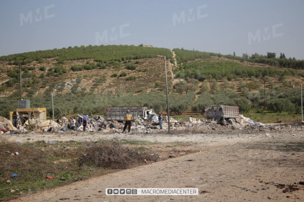 In its tweet at 12:59 PM and on its news page, Syrian Civil Defense provided more information about the victims, namely, that most of the victims were part of the same family, with the casualties including two adult sisters, one of whom was pregnant, their grandmother as well as two infants, identified as the two sisters’ children. The five injured civilians reportedly included one infant, two children, and two elderly men. SCD also shared images of its volunteers rushing to the place of attack.