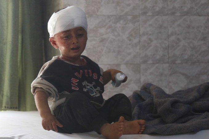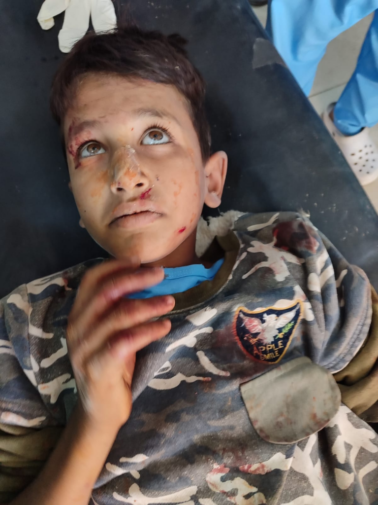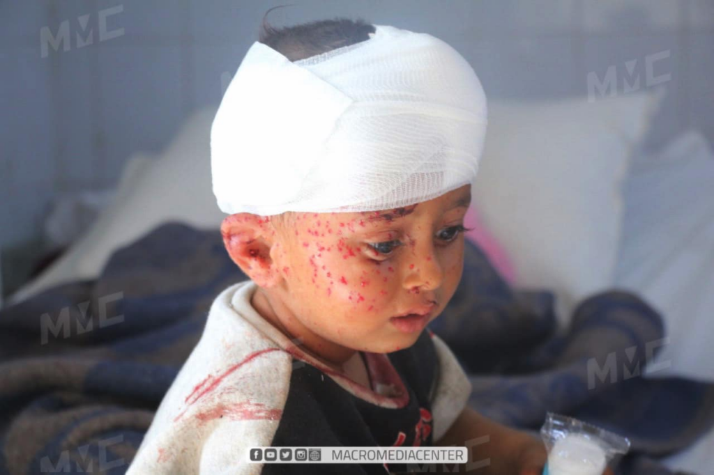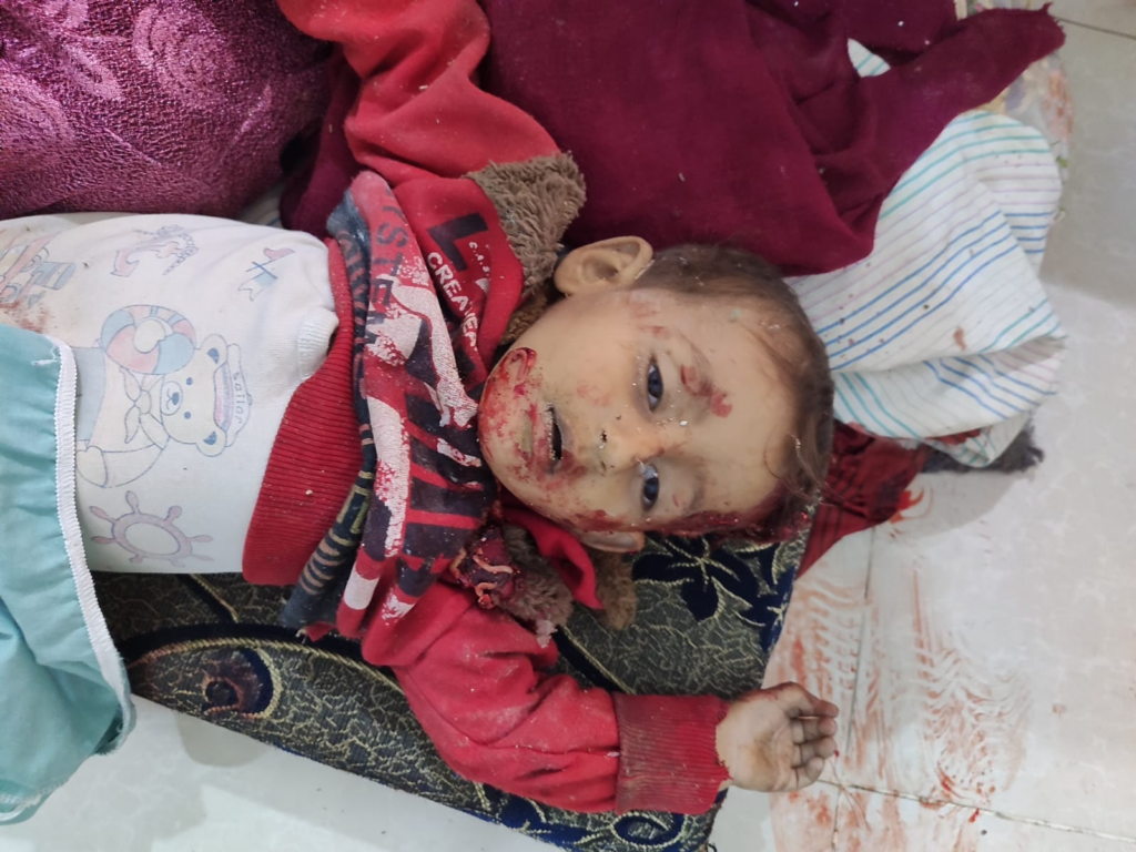 Twitter/X account of SCD shared a photo of the injured one-year-old child Abdullah Alaa Alewi with his head covered in bandages. Abdullah lost his mother, his sister (or brother), and his unborn sibling in the deadly attack, and SCD wrote heart-wrenching words about his destiny: “Unaware of what is happening around him…carrying his wounds and their bandages, with crying eyes filled with fear…waiting for the unknown…waiting for someone to tell him why Russian planes bombed his camp…why his mother and the fetus in her womb were killed…and why his sister was killed…why was his family displaced after they were displaced…why his toys were torn apart… What will his life be like after this tragedy???… Questions that the whole world may not be able to answer.”