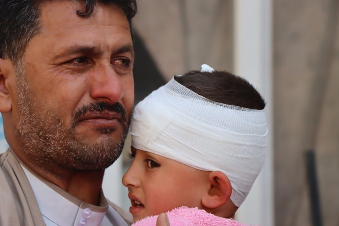 Not less impressive was an image also shared by the White Helmets – an image of a father crying over his daughters’ and granddaughters’ death, holding in his hands a surviving but injured child.