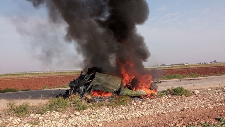 At 11:30 AM, the Syrian Civil Defense Twitter/X account posted a video of its staff members attending the incident where the double-guided missile struck a civilian vehicle leading to its burning. The body of the nurse Abdulhamid Ziwani who had died was recovered along with the driver and a doctor who had severe burn injuries from the blaze — all of them members of the Binnish Hospital staff.