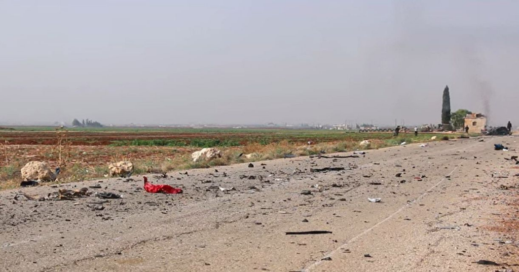 The White Helmets cleared the upside-down steaming vehicle and multiple of its parts were visibly spread on the ground where blood was found too.