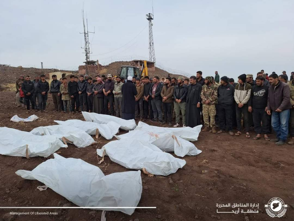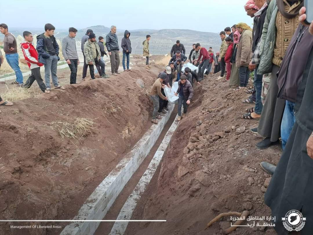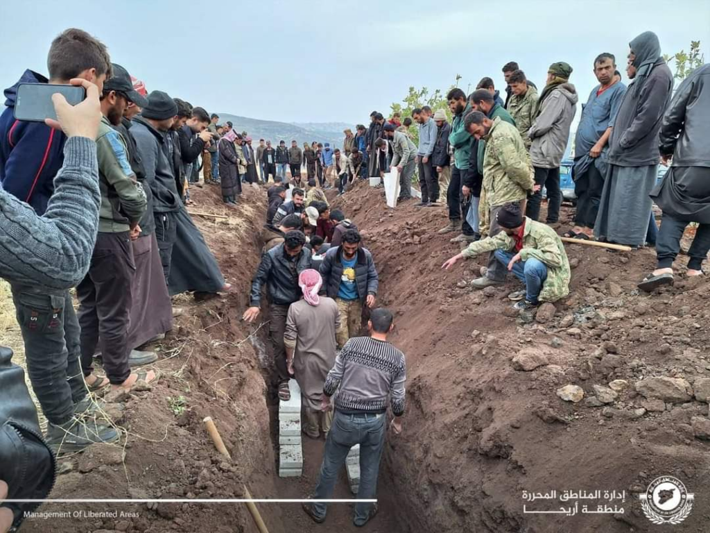 All the victims were relatives and belonged either to one or two related families. Some sources reported that “several” civilians were injured. According to the Syrian Observatory for Human Rights (SOHR), nine people died immediately on the spot, and one child died later as a result of the inflicted injuries. SOHR added that the number of the victims could rise as some wounded were in serious condition. Later Twitter/X accounts @zelal_katee and @molhamteam reported that the number of the victims reached 11. The Twitter/X user @alaaaldin_yousf posted pictures from the funerals of the victims. According to Abdul Hamid Qatini, a volunteer in the Syrian Civil Defense, the attack happened in the morning.