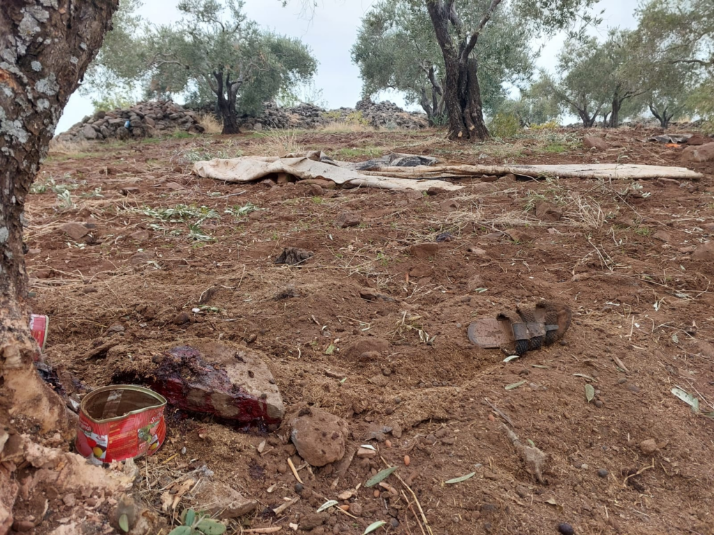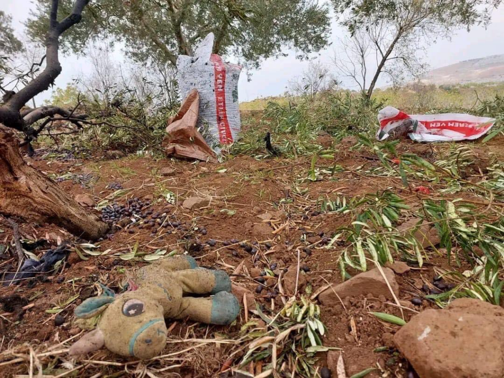Additionally, the Civil Defense posted on Twitter/X social media platform a video and pictures from the place of the deadly attack where one can see a cap and a toy horse, accompanying it with the words full of grief: “It was a place full of life and hope, the happiest moments after a year of waiting to harvest the olives, turned into a tragedy… everything was scattered… bodies, souls and dreams… a scene repeated every season and a different kind of war that haunts the residents in their daily livelihood.”