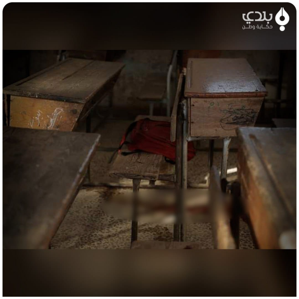 The class was full, and the children were visibly scared as the White Helmets evacuated the victims. The rest of the class was also evacuated. According to Syrian Civil Defense members, “Out of extreme fear, they forgot their pens and bags in their classrooms to save their lives from the death that followed them even at their desks.”