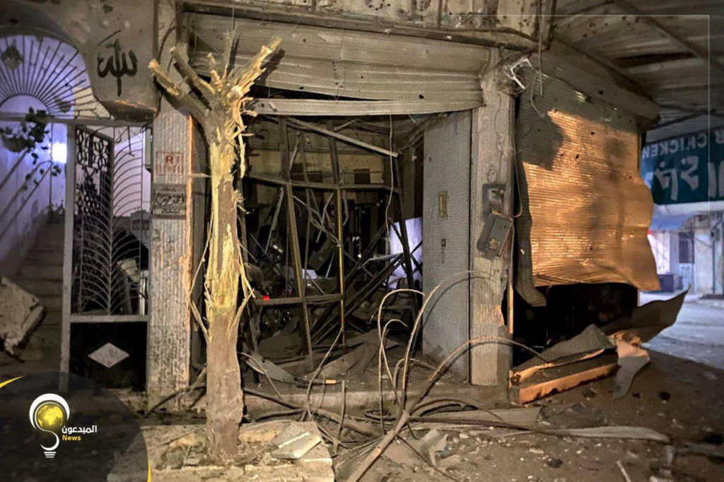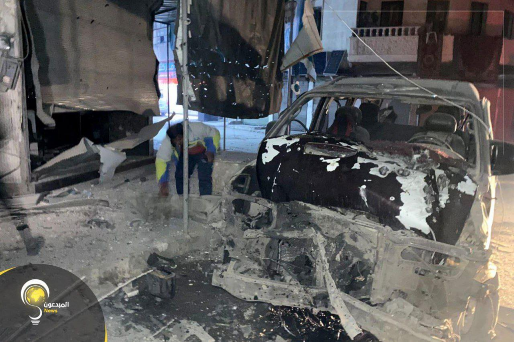 “Coordination of the Syrian revolution in the city of Adel” Facebook account reported the renewed violent artillery and missile shelling on the Al-Shamata Roundabout area in the city of Idlib. “Creators News” Facebook account shared images showing the aftermath of the strikes – destroyed buildings, burnt cars, and remnants of ammunition.