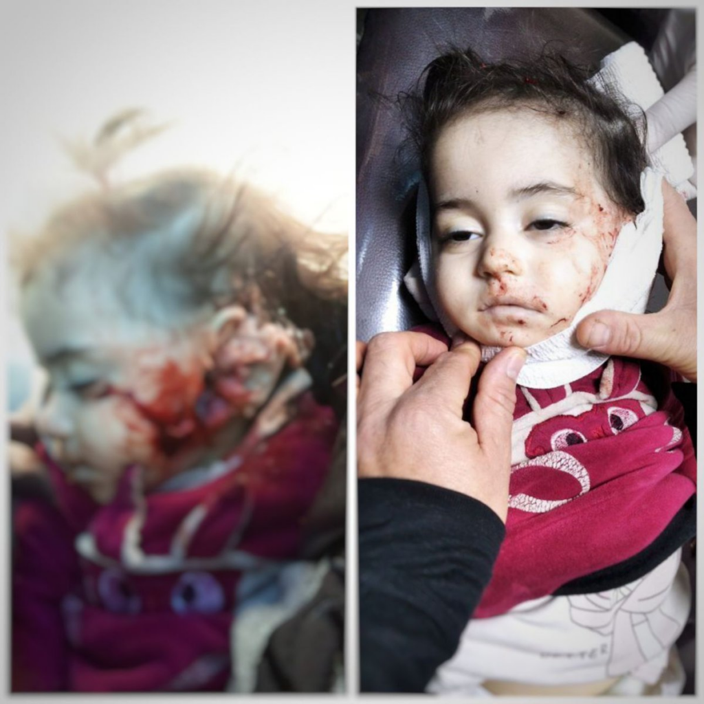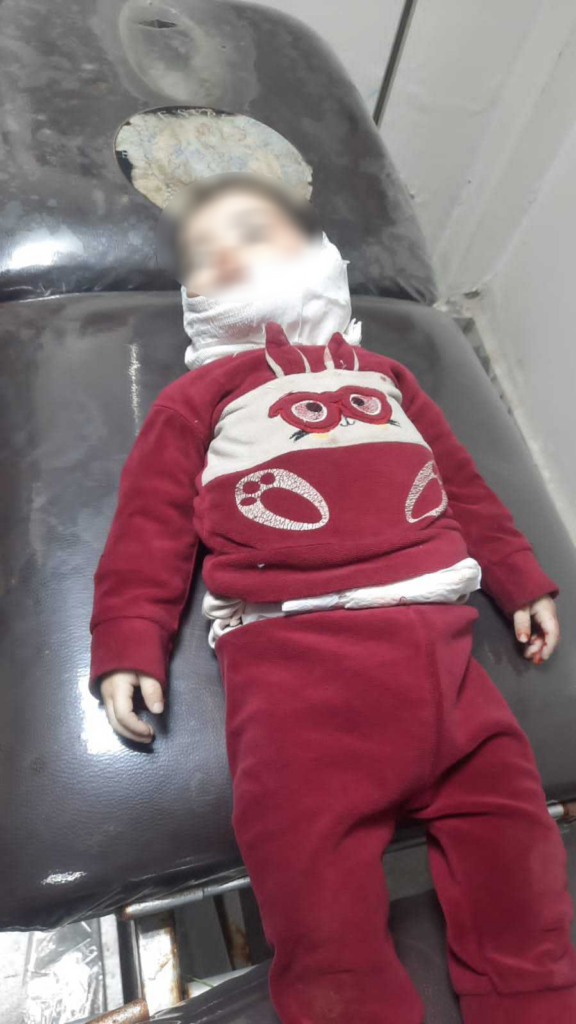 Many local sources reported on the incident and Jamil Al-Hassan’s post, @pvSScBsybeozsB8 and @TkrytyMr21896 identified the child who was killed as Rital Majed (or Imad) Al Adel. Jamil Al-Hassan’s post also included a video and reported that Rital Majed Al Adel was five years old and that her mother had been injured, while the @SyriaCivilDefe stated that Rital was approximately three years old and the woman injured was in her 40s.