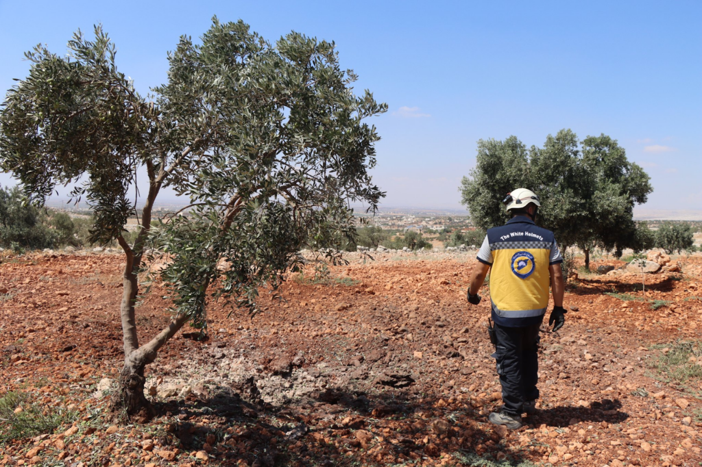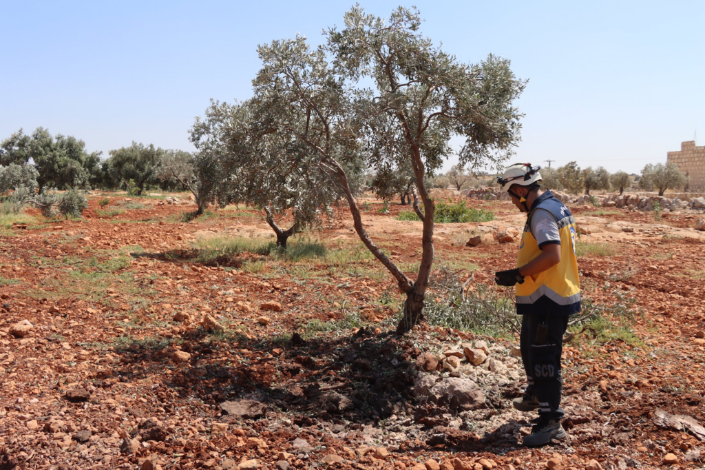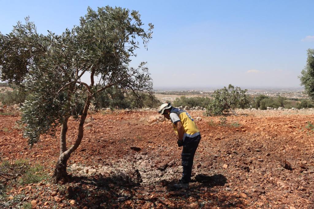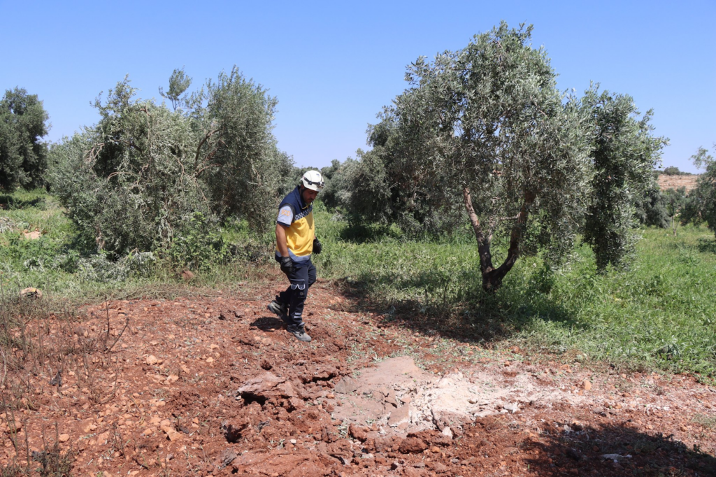 A Twitter/X post by the Syrian Civil Defence included photos of the bombardment craters on the countryside near a grove of olive trees. The tweet stated that a civilian was injured in the foot and the strike was an artillery bombardment by the Syrian regime’s forces. Facebook posts by Sana, Abdalla, Shabka, and Markaz corroborated the Syrian Civil Defence’s claim that the Assad regime was responsible for the artillery strikes.