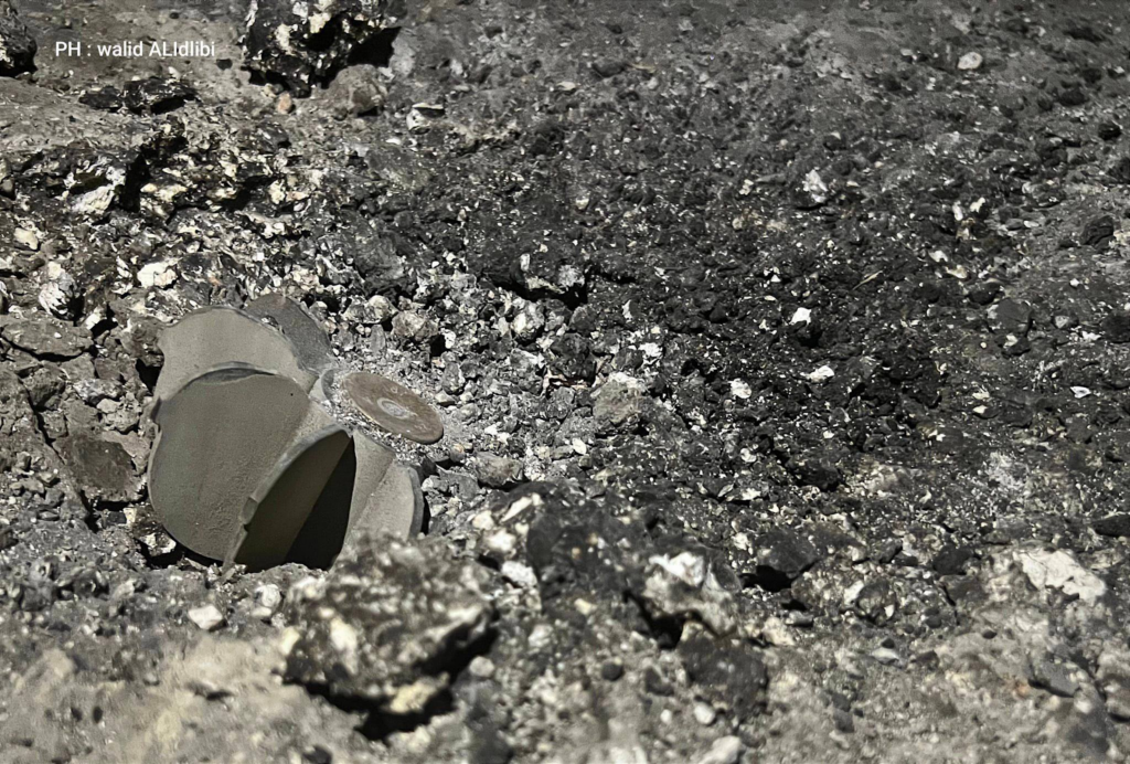 The Facebook account of the Syrian Network for Human Rights (SNHR) posted an image related to the event. The image depicted the aftermath of an explosive strike, focusing on a piece of ordnance lodged in the ground. The photograph showed the tail fin of a mortar or rocket shell embedded within a patch of scorched and fragmented earth. The area surrounding the embedded object was marked by blackened and charred debris, with broken gravel and small rocks scattered unevenly. The texture of the ground suggested the impact had been forceful, with the ordnance partially buried into the earth, leaving an impression of the violent event that occurred. The lighting highlighted the metallic sheen of the shell and the devastation around it, giving a stark visual of the destructive nature of the attack. The picture was accompanied by the capture: “Three children were injured after the artillery of the #Syrian_regime forces fired several mortar shells on the old diesel market area north of the city of Tadif, east of #Aleppo governorate, on 9-9-2024.”