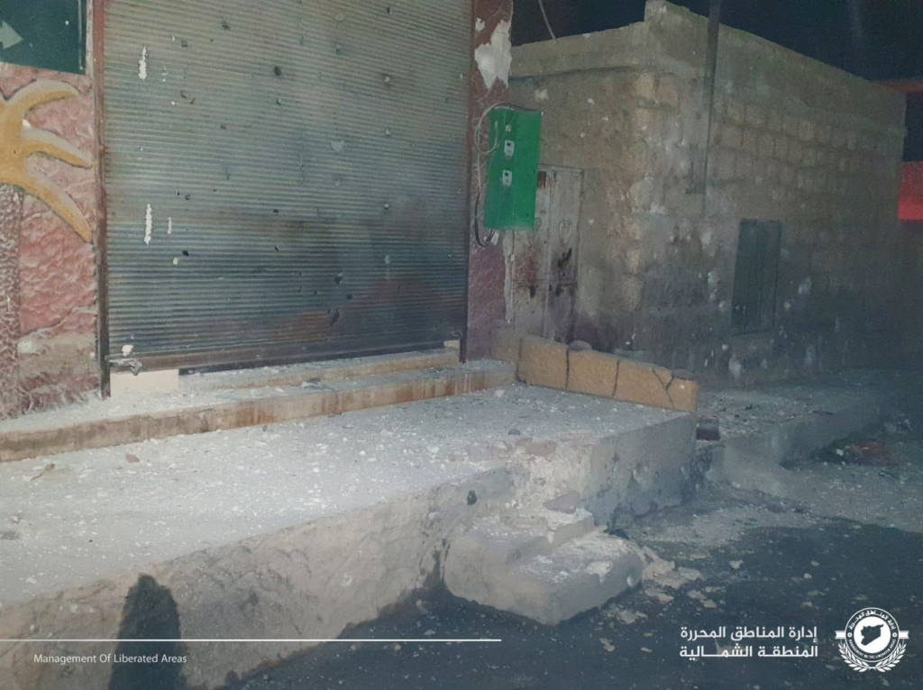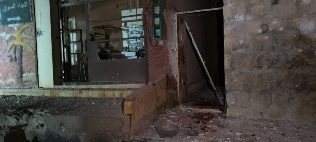 User Alatareb Alhorra shared other images of the aftermath, showing shrapnel damage on the walls of what appears to be a civilian shop.