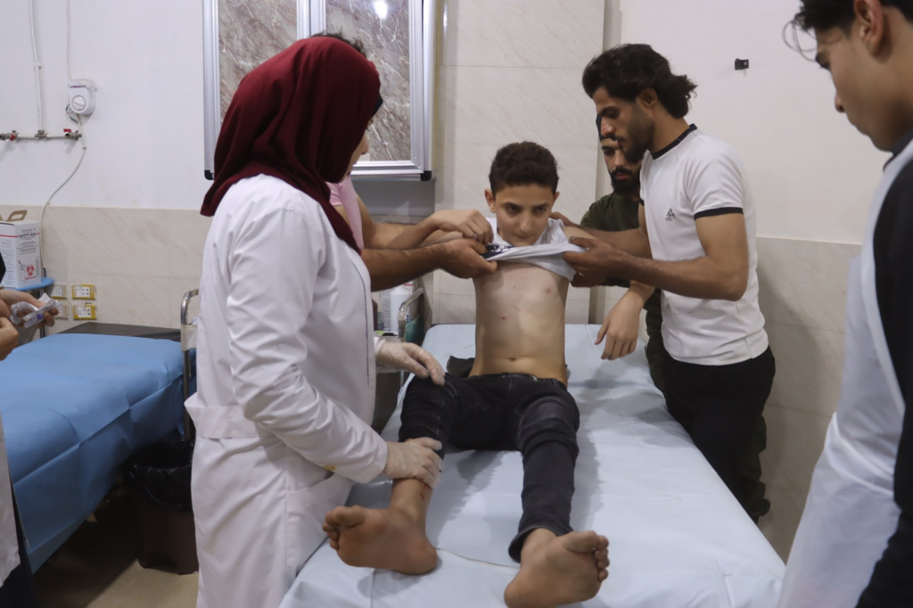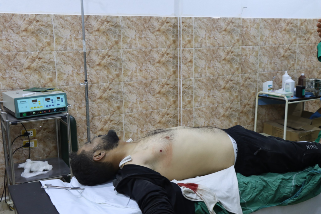 At 8:10 PM, @SyriaCivilDefe reported on Twitter/X the shelling as being carried out by “regime forces” and the presence of civilian casualties, followed by other two posts on the same platform that indicated the death of a 23-year-old (likely Muhammad Abdul Karim Ubaid) and the injuring of eight civilians, including two children, a young woman, and another woman. Three of the injured belonged to one family, and three to another one. The posts also showed pictures of a boy (probably Sadef Adnan Sadef) and two men being treated in a hospital.