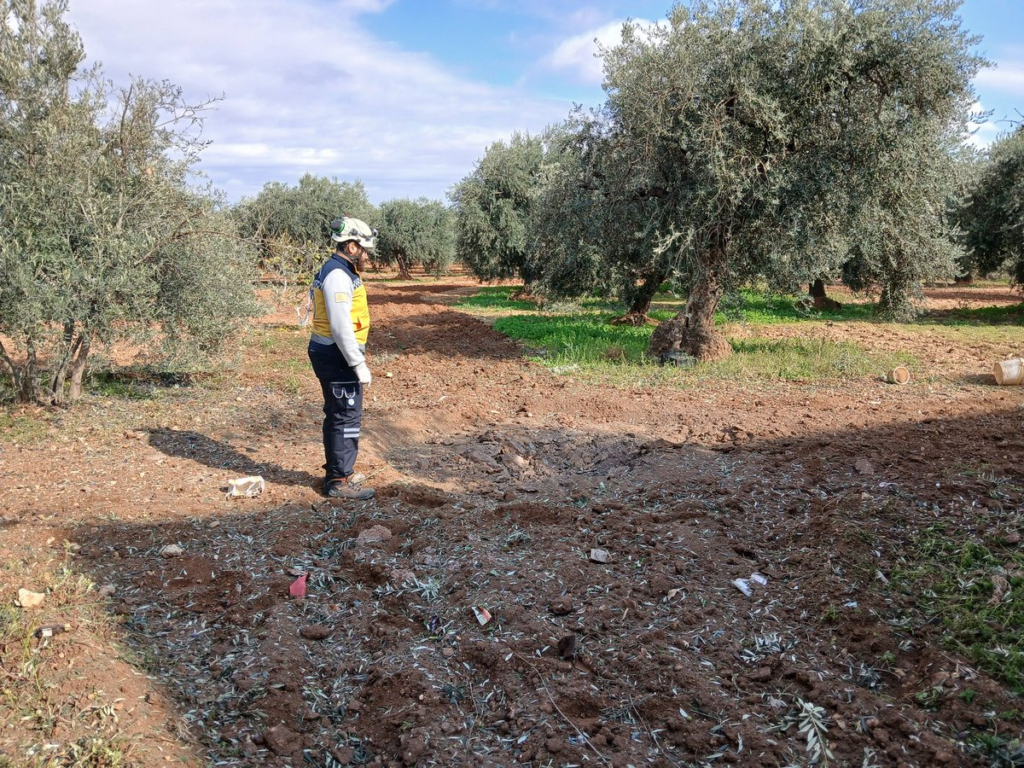 The only available image of the incident site was published by @SyriaCivilDefe, which showed a rescuer standing next to a small crater in the middle of an olive grove – while most posts reported the attack as an artillery shelling, some others also suggested the use of missiles. Sources were conflicted as to who was responsible for the strike as well, with some suggesting that the Syrian regime and Russian forces were responsible, while others also mentioned “Iranian militias.”