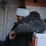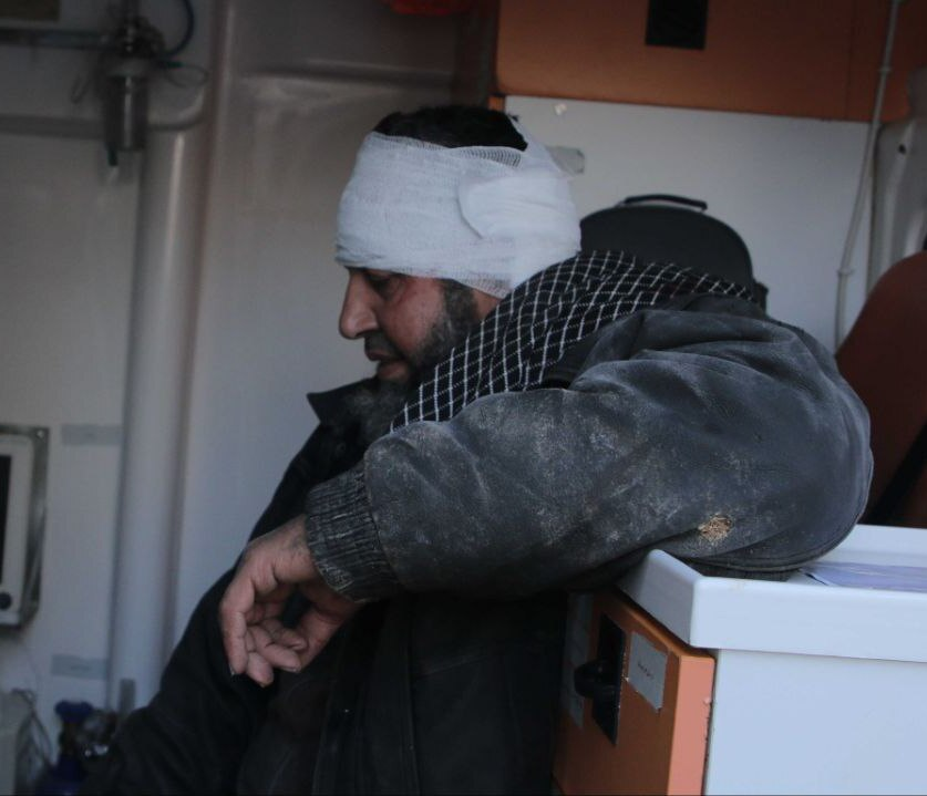 A graphic video shared by Syrian Civil Defence on Facebook also showed injured civilians while the reporter said: “Air and artillery shelling on the city of [Sarmin] in the Idlib countryside resulted in serious civilian injuries.” The video showed how SCD volunteers were rushing into a hospital screaming, “Oh God! Oh God!” The loud screams of the injured man with a bandaged head treated by several doctors simultaneously were heard. Another young man was seen being treated for his leg injury. One more elderly male with a gray mustache and glasses was also being treated for a leg injury.