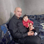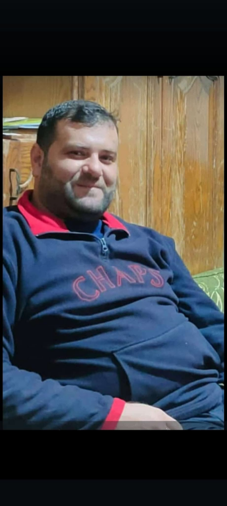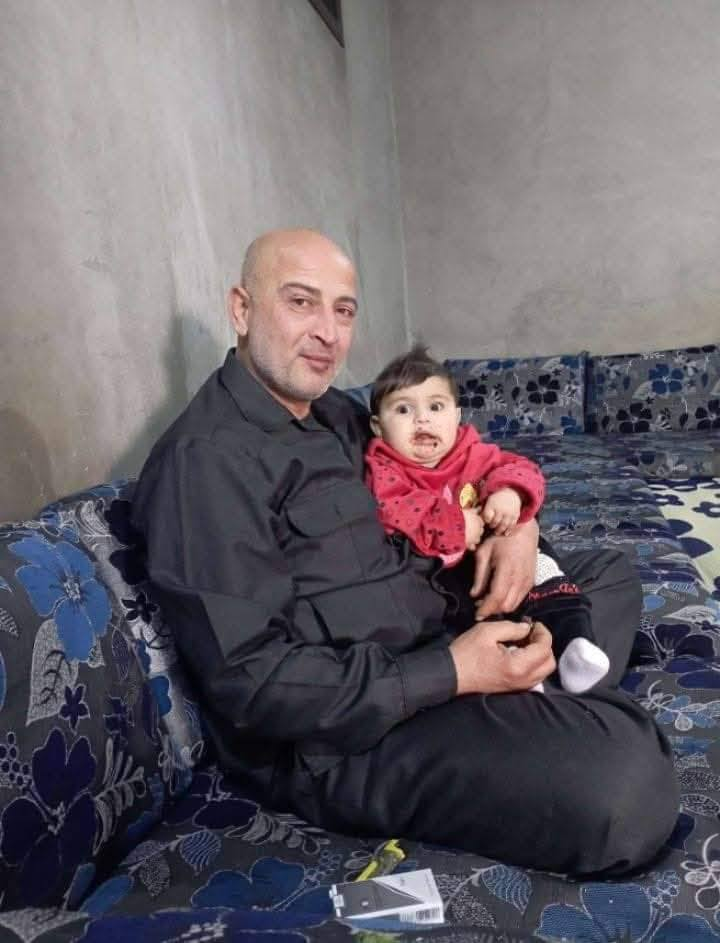 Ahmed Rashid wrote a Facebook tribute to the late Omar Abdulhamid Abbas, calling him “my dear neighbor” and a “beautiful martyr”. He added an image of Omar, pictured sitting on the couch and holding an infant child in his hands.