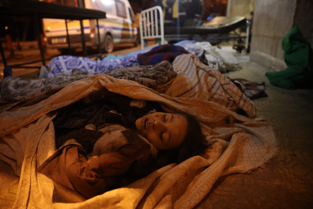 The Syrian Civil Defence (@SyriaCivilDefe) reported that “dozens of civilians were killed and injured in a massacre as a result of warplane airstrikes by the regime and Russia” on the al-Basel roundabout. They shared footage that showed emergency teams rushing into the aftermath, carrying injured people into ambulances and digging through debris. One picture showed a young girl lying wrapped in patterned blankets, her face still and peaceful, in the dim, amber light of what appeared to be a hospital corridor or makeshift morgue.