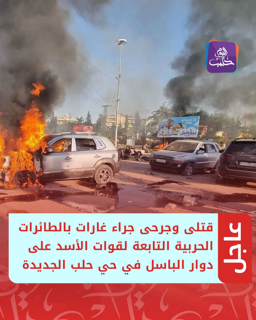 The Syrian Network for Human Rights (@snhr) stated that “Syrian regime warplanes fired missiles at al-Basel Roundabout in the New Aleppo neighborhood in Aleppo city, killing 10 civilians, including a child, and injuring at least 70 others.”