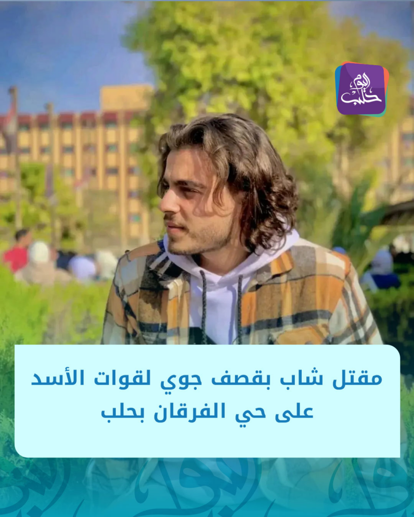 A young man, Mahmoud Yousef Handawi, was among the victims. In the image shared by Halab TV, Ahmad is seen as a young man with long hair, a trimmed beard dressed in a white hoodie and a checkered shirt. Mohammed Martini wrote a touching tribute to Mahmoud: “It’s too early, my brother, I haven’t come down and seen you yet, and everything is gone with you. It’s too early, my light of my eye, I still haven’t seen you coming and going, and my days have passed with you. May God have mercy on your soul, my light of my eyes.“